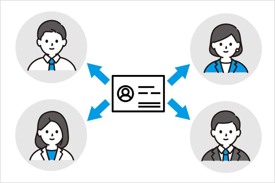 クラウドで名刺情報を一元管理し、部署やチーム間でスムーズに共有することが可能です。情報の属人化を防ぎます。