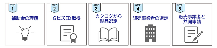 補助金申請は製品の販売事業者と共同で事業計画の策定が必要になるため、販売事業者の選定が必要です。
