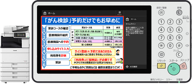 その複合機のパネルに社員に伝えたいことや、社内で会話のきっかけになるような告知を入れることができます。