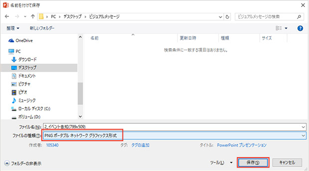 「名前を付けて保存」でPNG形式に保存