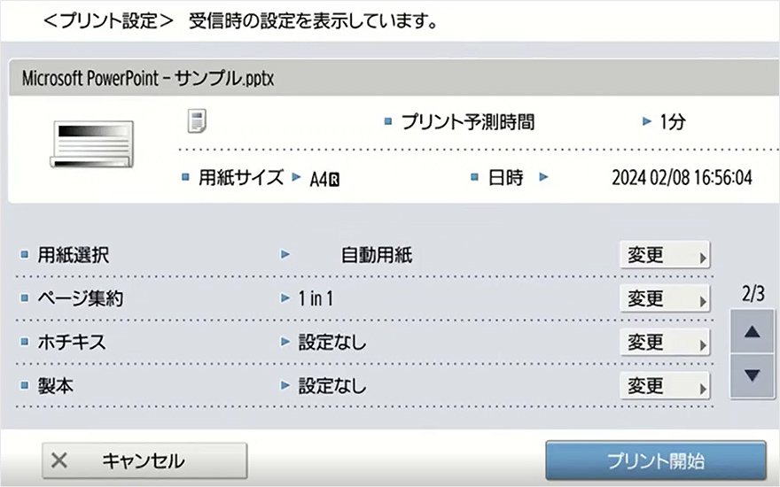 複数文書を一括で設定変更することもできるため、例えばPCで印刷設定をまとめて行い、複合機にて印刷しようとした際に設定の間違いを発見した場合など、PCと複合機を往復するムダな時間と手間を削減するということにも有効かもしれません。※