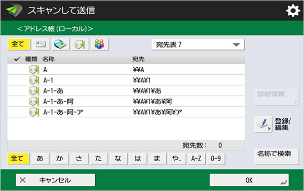 複合機のアドレス帳は階層やフォルダが違うだけで、1件ずつ宛先を作成する必要があります。