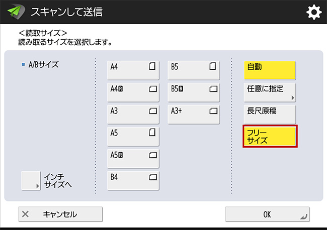 読取サイズ(フリーサイズ)を選択します。