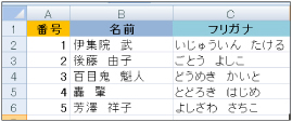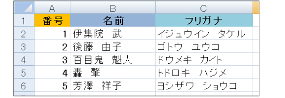 「PHONETIC関数」は、セルに入力されている文字のフリガナを抽出する関数ですが、漢字を入力した際の情報が反映されるため、名前の読み方としては間違っている場合があります。