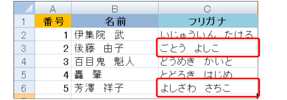 あなたはリストを確認していたところ、名前のフリガナに誤りがあるのを発見しました。