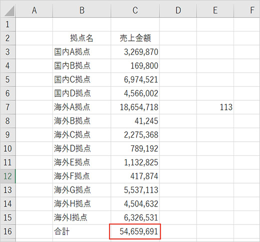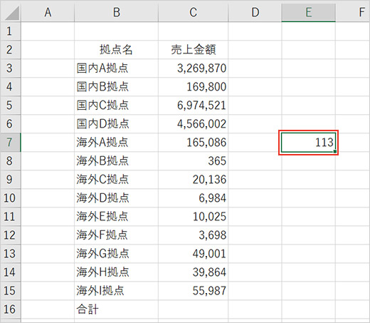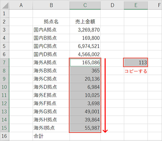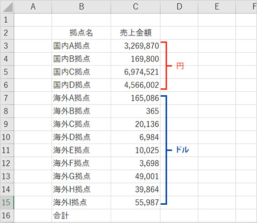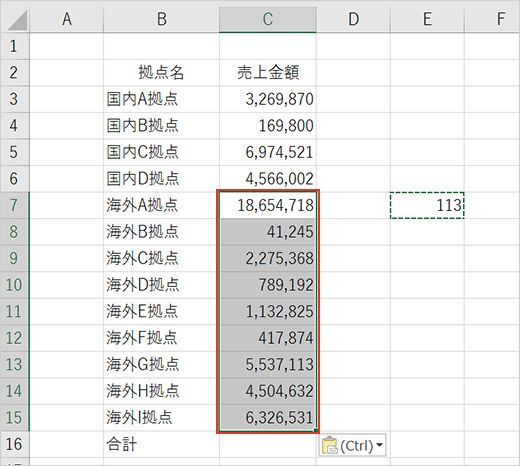 海外の売上高が113倍され、単位が「円」に統一できました。