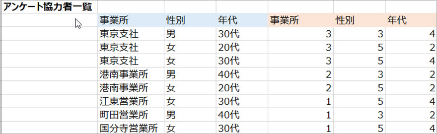 そこで事業所などカテゴリーごとの回答者数を確認するにはどうしたらよいでしょうか?