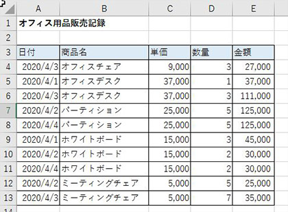 あなたはExcelでオフィス用品の販売記録を管理しています。