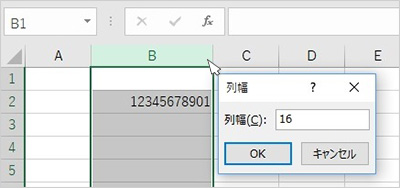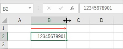 マウスでセルの幅を広げる、またはダブルクリックすることで表示可能範囲が広がり、入力したとおりの数値が表示されます。