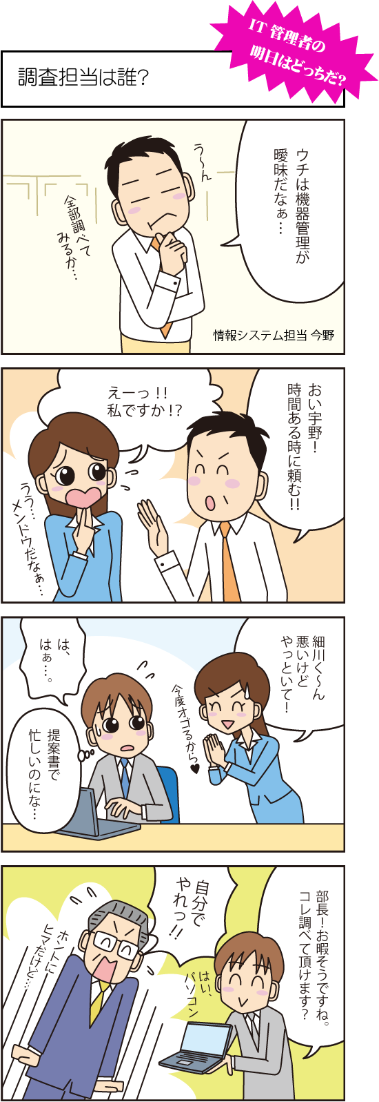 台数が多い場合は資産管理ソフトウエアの導入をお勧めします。