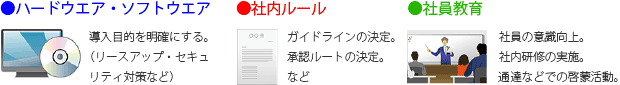 また、いくら環境面でセキュリティを強固にしても、利用する側が正しく使わないと思わぬところで情報漏えいにつながります。