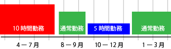 - 閑散期の労働時間の短縮により、年間の労働時間の短縮が可能となります。