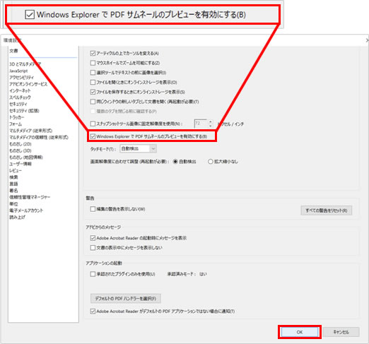 Windows10 Adobe Acrobat Reader DCを使用していますが、PDFがサムネイル表示されません