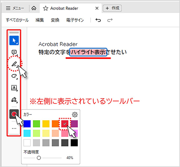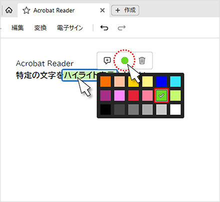 Adobe Acrobat Reader:文字をハイライト表示にする