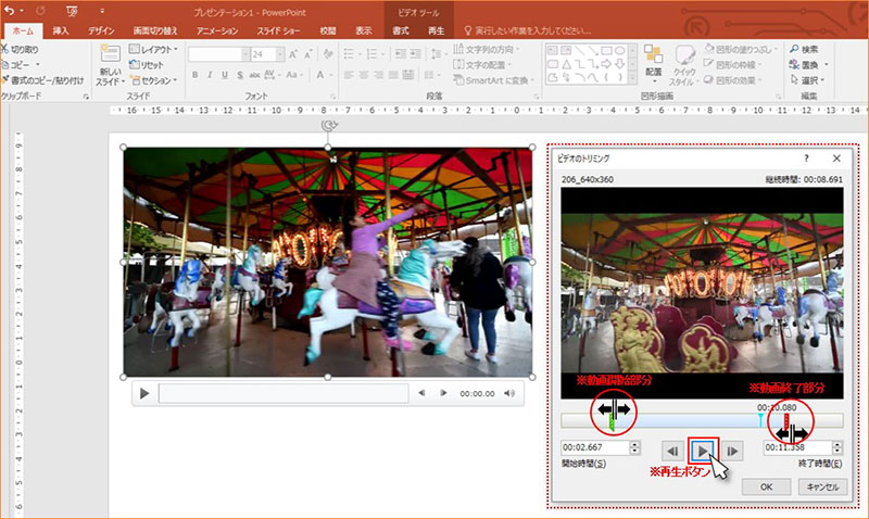 PowerPoint:動画の再生時間を変更(トリミング)したい