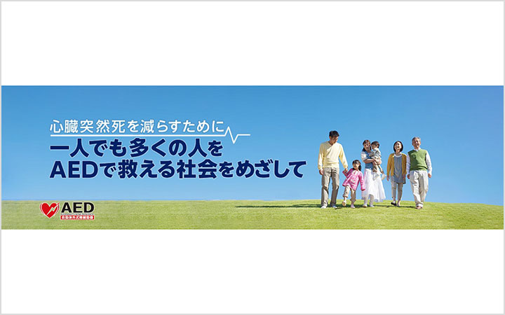 突然、目の前で人が倒れたら、あなたの「一歩踏み出す勇気」が必要です。AEDは誰でも簡単に使用することができる医療機器であり、決して怖いものではありません。救急隊が到着するまでに傷病者に対して、少しでも早くAEDを使用した心肺蘇生法を行うことで救命率の急速な低下を抑えることができます。