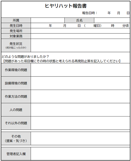 ヒヤリハット報告書テンプレート(フォーマット)