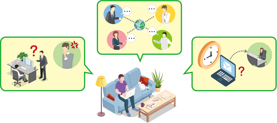 出社すれば雑談も生まれ、自ずと社内コミュニケーションも取れますが、そうした機会が減れば報・連・相もついつい滞りがちになってしまうのです。