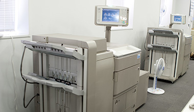 作業面では、まず弊社では朝2,000枚ぐらいを一度に出力します。以前のものだと約1時間かかっていた出力が、現在は20分もかかりません。とても速くなっています。台数が6台から2台に減ったのに、所要時間が約3分の1に短縮することができ、大幅に生産性が向上しました。