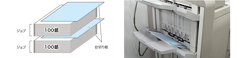 仕切り紙挿入機能 … 出力物の区切りに指定した給紙段の紙を挿入するプリンターの機能。