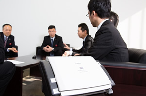「何十名という営業所の職員の中で、事務を引き受ける人は1名か、多くて2名。書類をセットしてボタンだけ押せばOKという操作の簡単さが気に入りましたし、デスク脇に置いて、座ったままどんどん処理できるというコンパクトさも大きな決め手でした。