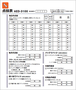 毎日のAEDの点検結果の記録には、点検表をご活用ください(直近3か月程度の保管が望ましいとされています)