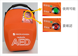 AEDは救命処置のための医療機器です。いつでも使用できるように、AEDのインジケーターや消耗品の有効期限などを日頃から点検することが重要です。