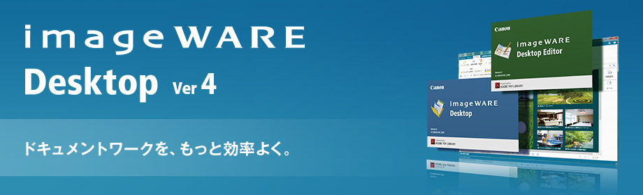 imageWARE Desktopは、imageFORCEをはじめとしたオフィス向け複合機との連携で、オフィスにおける一連のドキュメントワークをサポートし、生産性向上とコスト削減を可能にするデスクトップツールです。紙文書や電子データなどさまざまな情報があふれ、ありとあらゆるドキュメントワークが発生するオフィス。それらすべてを机の上で一元管理でき、情報資産の有効活用を推進します。