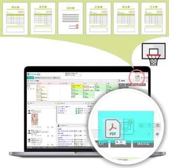 バスケットは、文書ファイルをバスケットゴールのように投げ込むだけで、AI-OCRがファイルを分析し、NIの各機能に振り分けを行うアプリケーションです。本文の内容をOCRで転記することもでき、業務の効率化を図れます。更にバスケット経由でSales Force Assistantへの名刺連携も可能です。