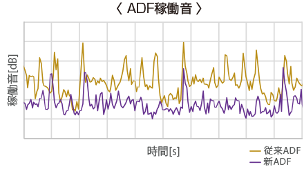 ADFのスキャン時に発生する紙の衝突音、搬送時のモーター駆動音を抑制。さらに、反射型センサーの採用と、搬送経路を滑らかな構造にすることで、原稿が通過する際の接触音も抑えています。また、フィニッシャー※1は、稼働トレイにベルト駆動を採用。動作時の突発的な衝撃音の低減などの対策により、稼働音を大幅に低減しています。