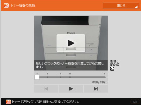 交換作業をカンタンにするために、液晶タッチパネルにトナー容器の交換方法が動画表示されます。動画に沿って操作することで、迷うことなく交換作業が行えます。