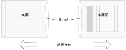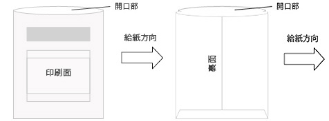 縦送りする場合、薬袋開口部を給紙方向とは反対に向けてセットします。