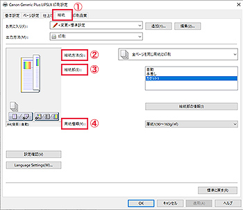 印刷設定画面の上部にある[給紙]タブをクリックします。