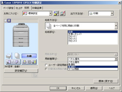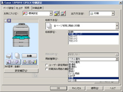 用紙タイプの選択肢から[普通紙L]を選び、[適用]ボタンをクリックします。