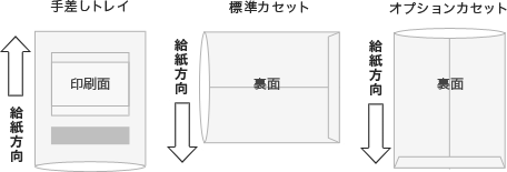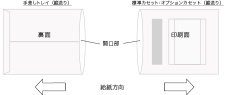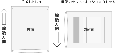 オプションカセットを使用する場合、薬袋開口部を給紙方向とは反対(向かって奥)に向けて、印刷面を下にしてセットします。