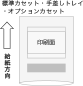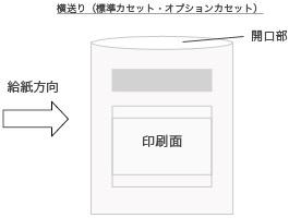 縦送りの標準カセットやオプションカセットを使用する場合、薬袋開口部を給紙方向とは反対(向かって左)に向けて、印刷面を上にしてセットします。