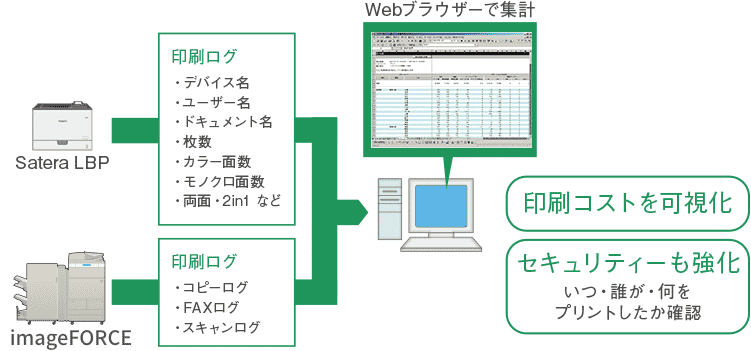 出力ログを収集し、プリント情報の集計・管理が可能。