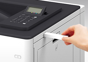 カードをかざすだけで、簡単に個人認証が行えるプリントシステムです。社員証など、いま使用しているICカード※1をそのまま利用できます。個人認証することで、セキュアなプリント環境の構築、ユーザー毎にプリンター利用の適正化が図れます。