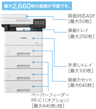 最大4段カセットに対応 「最大2,660枚大容量給紙」