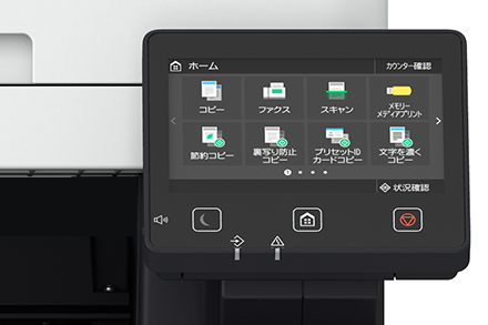 使用頻度の高い操作や便利な機能を、ホーム画面に登録し、ボタンひとつで実行できる機能です。例えば、繰り返し使う文書を登録しておくことで、パソコンを起動しなくても印刷が可能。時間短縮や作業精度の向上につながります。