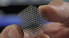 ハニカム構造は従来の製造技術でも十分できるのですが、3次元のセル構造体になると溶接するのも削り出すのも難しくなります。例えば「軽くて強い構造はこれだ」といった最適な形状を我々が見つけ設計できたとしても「作れませんよ」と言われて終わっていました。それが今では電子データで最適化したセル構造により近い実物の構造物が容易につくれるようになりました。