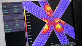 材料力学の一番の目的は、軽くて強い材料を安全に無駄なく作る事です。特に最近行っているのが軽量構造の機械的特性で、例えば自動車や航空機に使われる材料を、いかに軽く、衝撃に強く、人体を守れるか、さらには燃費を良くする構造を作るためにはどうすればよいかといった事を研究しています。
