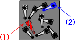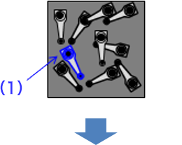 部品(1)をピッキングした(赤斜線)以外の領域が変化していないければ次の把持候補部品(2)を計測処理なしでピッキング