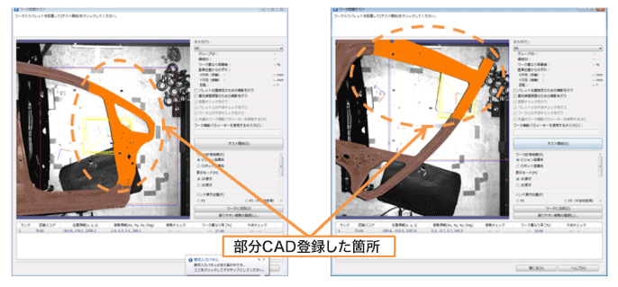 適用部品を拡大し、さまざまな生産ラインで使用したい | ワーク部分認識 | 計測範囲を超える大型部品、可動部品などCADとの形状差異が大きな部品に対し、部分CADを用いることで認識 |