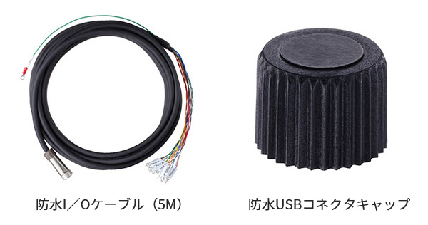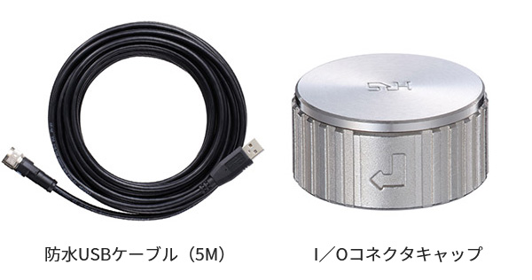 USBケーブル(5m)とI/Oコネクタキャップです。