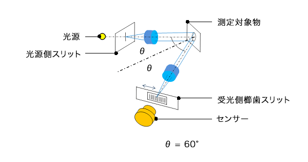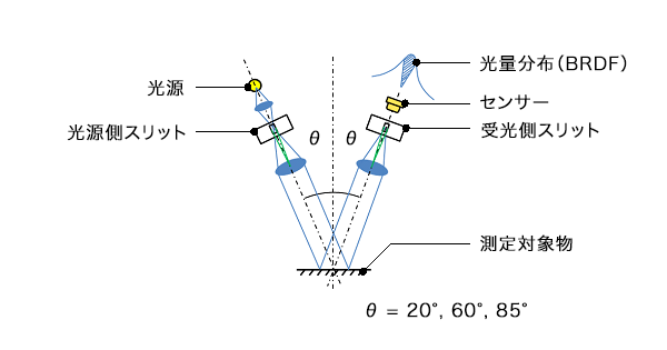 - 照射角度θは20°、60°、85°が規定されスリット構成も異なります。