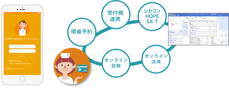 診療所から中堅病院までご利用いただける富士通のレセコン「HOPE SX-T」。さまざまな社会環境・医療制度の変革に迅速に対応します。