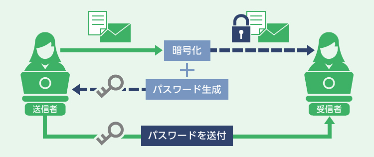 送信者は、パスワードを別のメールなどで受信者に送信します。