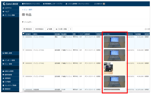 稟議書、説明書、保証書などの資産に関する関連ファイルも、Convi.BASEで一元管理できます。