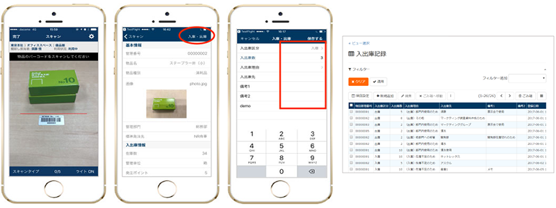 iOSアプリでバーコードを読み取ることで、その場で簡単に入出庫記録を取ることができます。